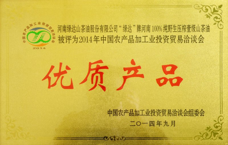 目前,河南绿达山茶油股份有限公司已开发出“绿达”、“聪明树”等茶油品牌。公司采用低温压榨等新技术,将油籽控干水分后剥壳,无需加热直接压榨,最大程度保全油茶籽中多酚类、皂苷类和维生素E等对人体有益的活性成分,生产出品质优良、生态环保的山茶油。目前,绿达山茶油产品已经通过国家食品安全认证、有机认证和美国FDA认证。公司先后被评为“河南省林业产业化重点龙头企业”、“河南省农业产业化重点龙头企业”、“信阳市主食产业化和粮油深加工优秀企业”、“2015年度河南食品行业最具影响力品牌”等荣誉称号。